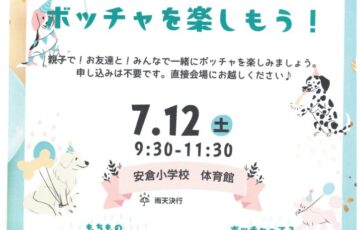 親子で一!お友達と!みんなで一緒に楽しもう! 「ボッチャを楽しもう!」開催のお知らせ。 パラリンピックの正式種目「ボッチャ」は、 年齢や性別、障害の有無、運動の得意・不得意など関係なく、 誰とでも一緒に楽しむことができる…