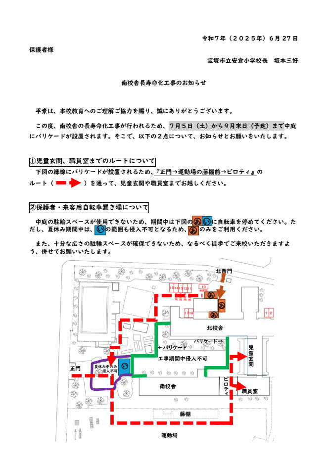 学校に登校される際や、ご用の際はグラウンド側から職員室などにお越し下さい。