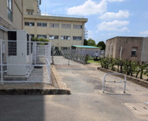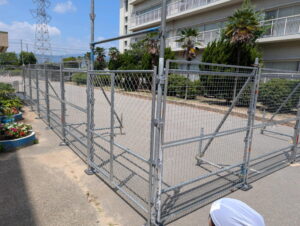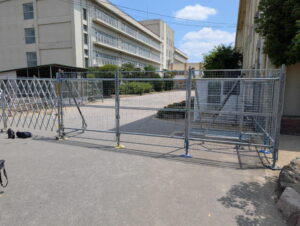 校内で工事によるバリケードの設置が行われています。