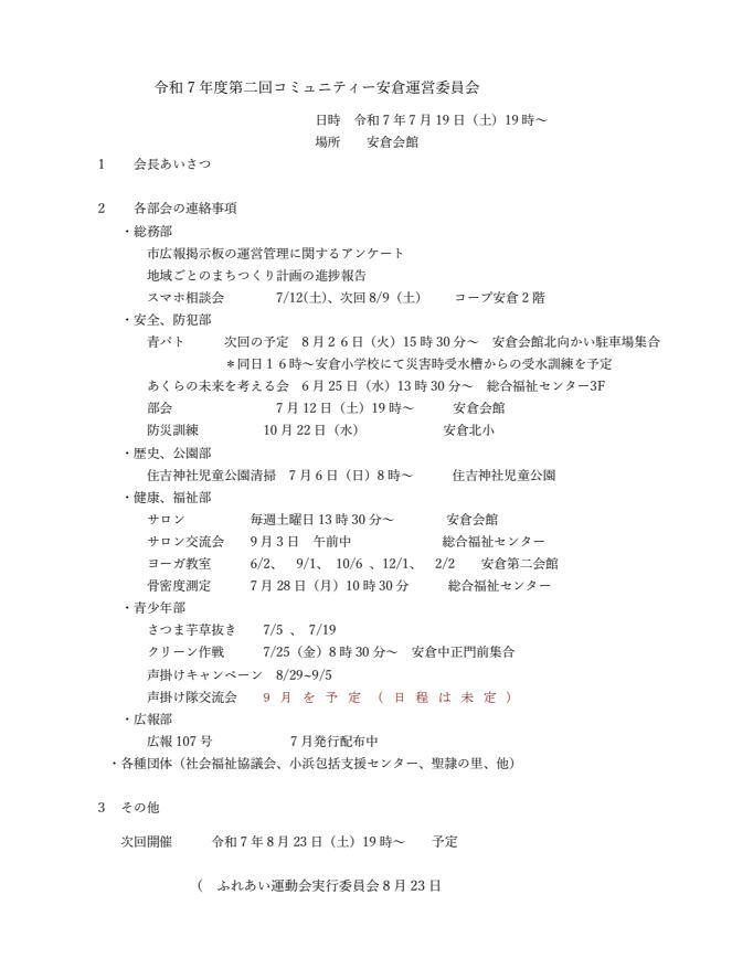 ・令和7年度第二回コミュニティー安倉運営委員会(PDF)
