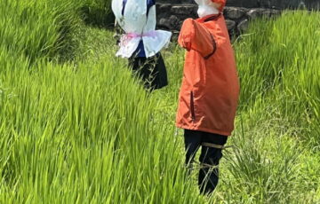 児童館の子どもたちが「かかし」を作ってくれました。 鳥や動物が作物を荒らすのを防ぐためにたてられる「かかし」が、 安倉会館北西側の田んぼに登場しています。 児童館の子ども達が一生懸命作った「かかし」が稲穂の豊作を見守って…