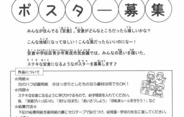 お子さん限定! 「こんな安倉にしたい!」啓発ポスター募集中! みんなが住んでる『安倉』。 安倉がどんなところだったら嬉しいかな? 「こんな地域になって欲しい!」 「こんな風だったらいいのにな~!」 みんなの思いを描いた、…