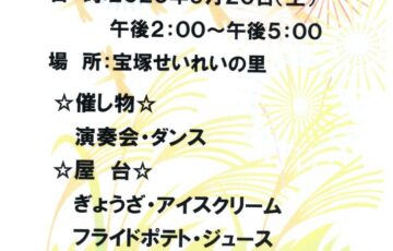 「第9回 宝塚せいれいの里祭り」開催します。 子ども向けのゲームコーナーや屋台もあります。 事前の申込みは必要ありません。 一緒に楽しいひとときを過ごしましょう♪ 日時:令和7年9月20日(土) 午後2時から午後5時まで…