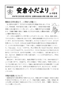 安倉地区の小学校・中学校だよりが届きました。(9月)
