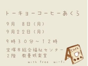 トーキョーコーヒーあくら (9/8、9/22)開催します。