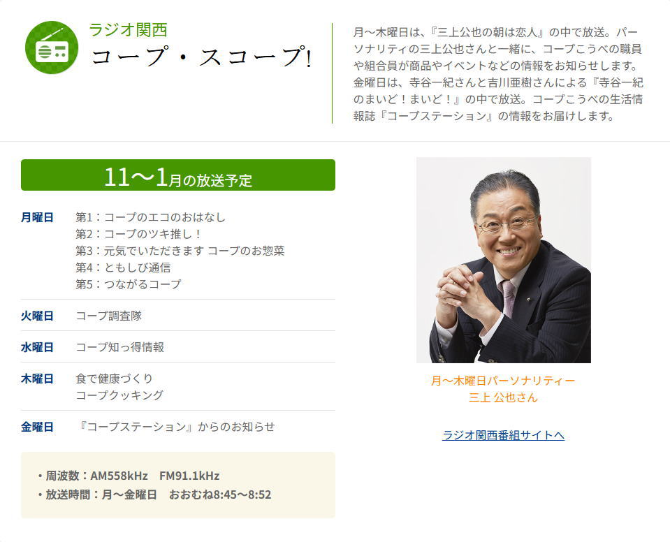 11月10日(月)、ラジオ関西「三上公也の朝は恋人」番組内の