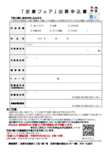 ①応募チラシ裏面に記載頂き「安倉フェア実行委員会」まで御願いします。