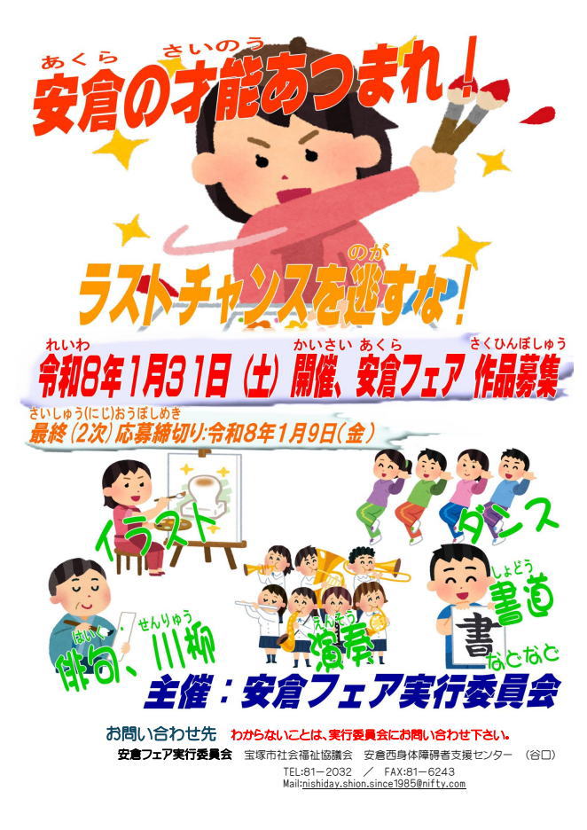 「安倉フェア(R8.1.31)」作品の最終(2次)募集します。