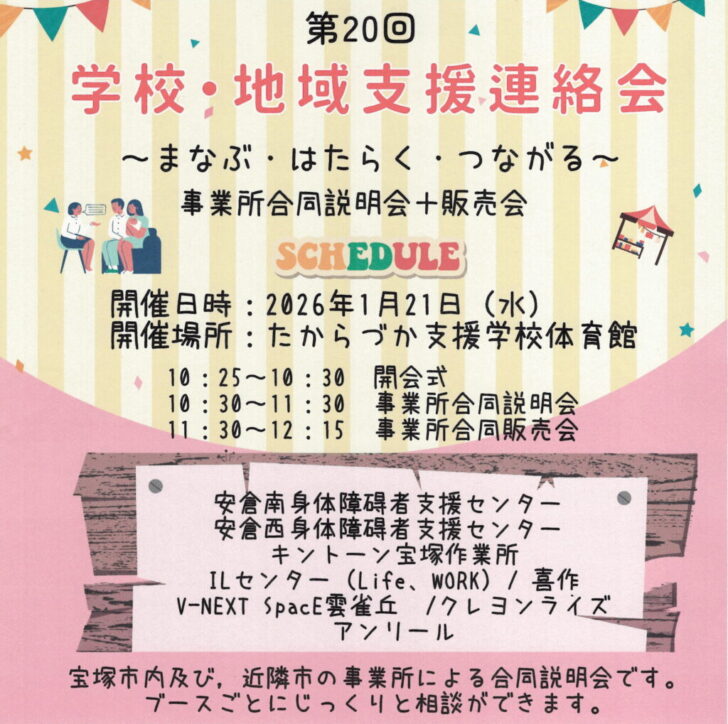 連絡会当日は、宝塚市内及び、近隣市の事業所による合同説明会に加え、