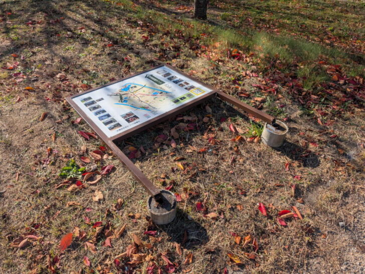 大堀川河川緑地公園 東側入り口にある「安倉散策マップ」看板が