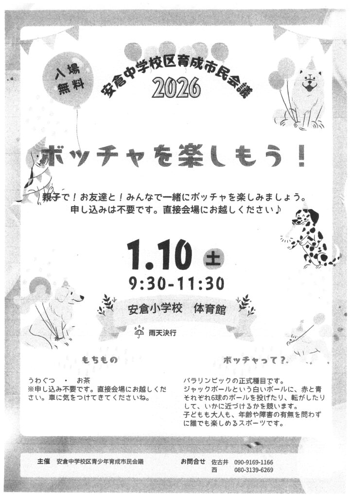 ※安倉地区まちづくり協議会(コミュニティ安倉)ホームページのご意見箱から送信頂いても大丈夫です。(担当者にお伝え致します。)