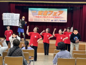 「手話ダンス」ハイビスカスさんによるダンスでは、みんなで声を合せてダンスしました。