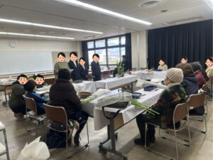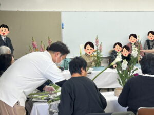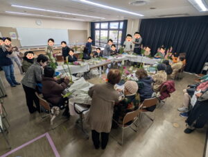 「生け花教室」では、安倉中学校の茶華道部さんと一緒に、事前申し込み・当日参加の方と一緒に生け花を楽しんで頂きました。