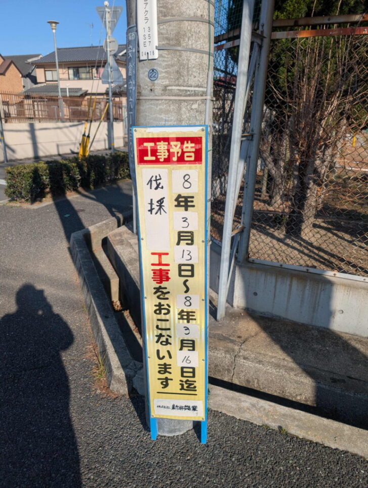 工事は、視認性を高める目的で伐採されます。