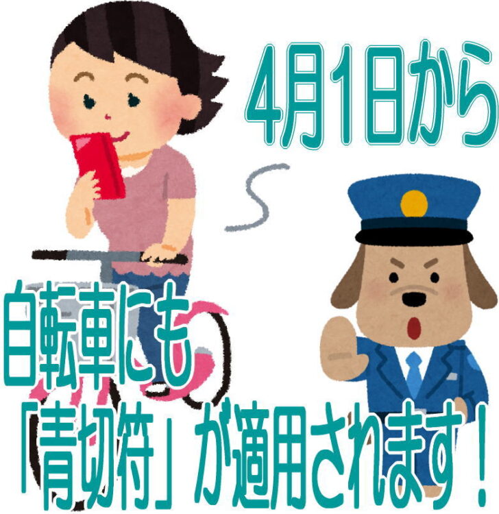 令和8年(2026年)4月1日から16歳以上の自転車交通違反に対して「青切符(交通反則通告制度)」が導入されます。