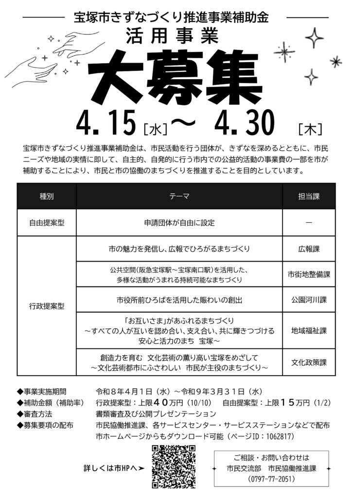 ・令和8年度 宝塚市きずなづくり推進事業補助金の活用事業を募集します(宝塚市ホームページ)