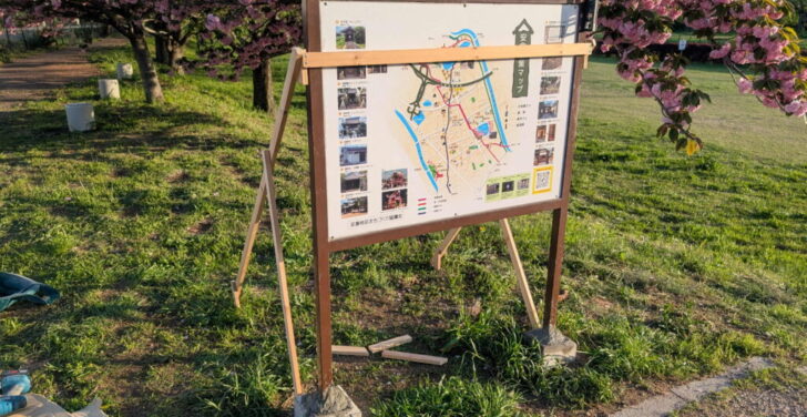 安倉散策マップ 大堀川緑地公園の看板設置(修復)作業をしてます。(~4/16)