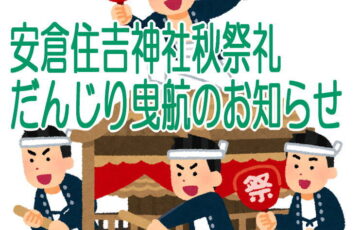 安倉住吉神社秋祭礼 だんじり曳航のお知らせ(10/10・11・12)