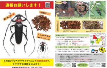 2025年7月、長尾台と花屋敷松ガ丘で特定外来生物・クビアカツヤカミキリのフラス等が見つかりました。 詳しくは2025年7月29日のブログ記事をご覧ください。 令和7年7月31日(木曜日)に川西市内の市道街路樹(小戸)で…