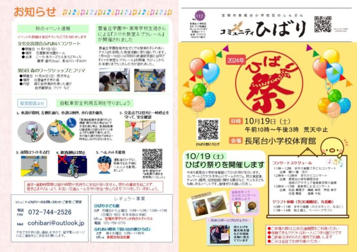 2024.08.26 広報紙 このページを印刷 コミュニティひばり コミュニティひばりしんぶん112号 コミュニティひばりしんぶん112号を発行しました。 ひばり祭りなど秋のイベント案内やひばり子ども館の特集記事などを掲載しています。 しんぶん112号は各自治会を通じて配布されるほか、雲雀丘サービスステーションにも配架しています。 ↓画像をクリックするとPDFを表示します