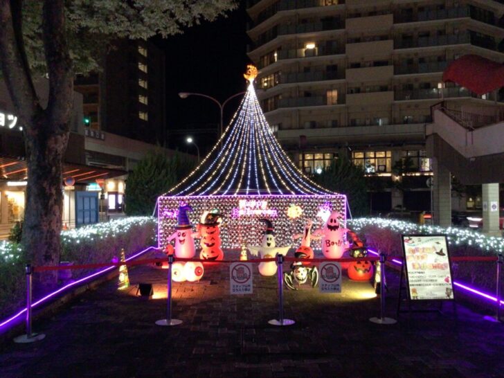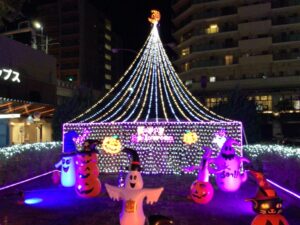 10月31日(木)のハロウインに向けて宝塚南口駅前にイルミネーションが灯っています。