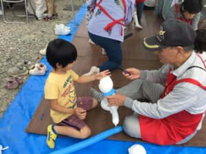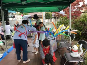 会場入口付近では子供さんたちがバルーンアートで楽しんだり、飲食コナーでは「善哉(ぜんざい)」に舌鼓され、「コーヒー」「ジュース」を飲みながら和気あいあいに談笑されていました。