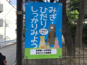 一小まち協安全部会が点検して効果的な電柱幕を作製しました。