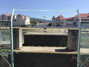 ❶迎宝橋の親柱       (武庫川を見て迎宝橋の説明)