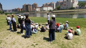 宝塚第一小学校3年生173名(5クラス)が地域学習として、6月5日(木)旧宝塚温泉街から武庫川河川敷を1時間半かけて巡りました。