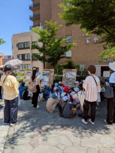 各ポイントには語り部が写真パネルを使い説明をしました。