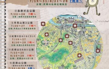 7月19日(土)から一小校区内で『夏休みラジオ体操』が始まります。 実施場所は9ヵ所ですが実施日、開始時間が違います。 ❶武庫川河川敷右岸 7/19〜31・ 8/21〜28 7時30分〜 ❷長寿ガ丘公園 7…