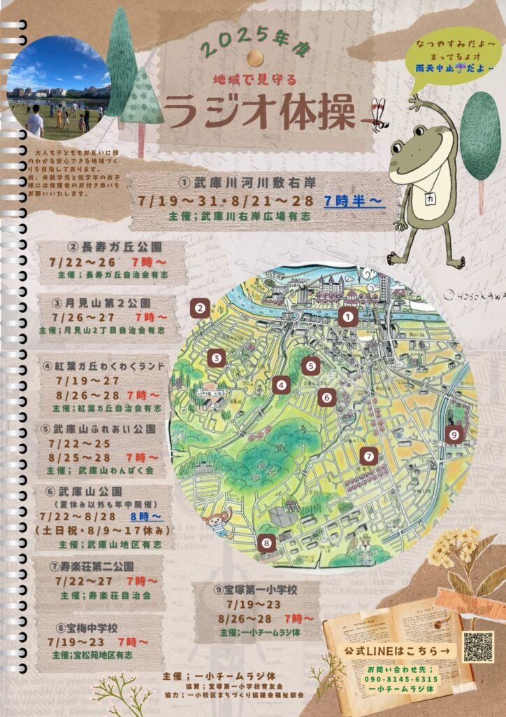 『夏休みラジオ体操』を通じて、地域の大人も子供もお互いに顔のわかる安心できるまちづくりを目指しています。
