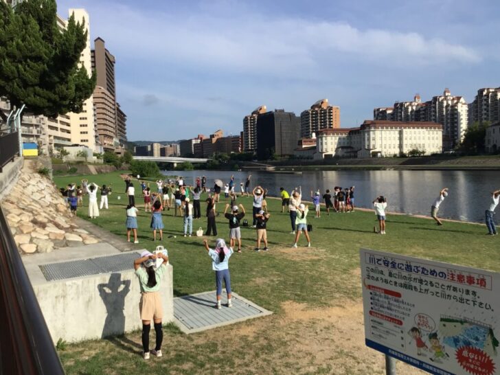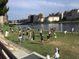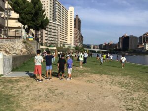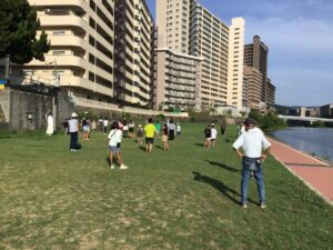 武庫川右岸河川敷には約70名の子供さん達が集まりました。