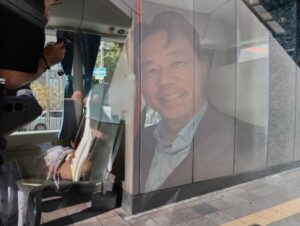 主催のランランバスを守る会の皆さん、市長、市都市安全部長、JR宝塚駅長、(株)フクユ、FM宝塚、一小まち協などから関係者約30余名が参加しました。