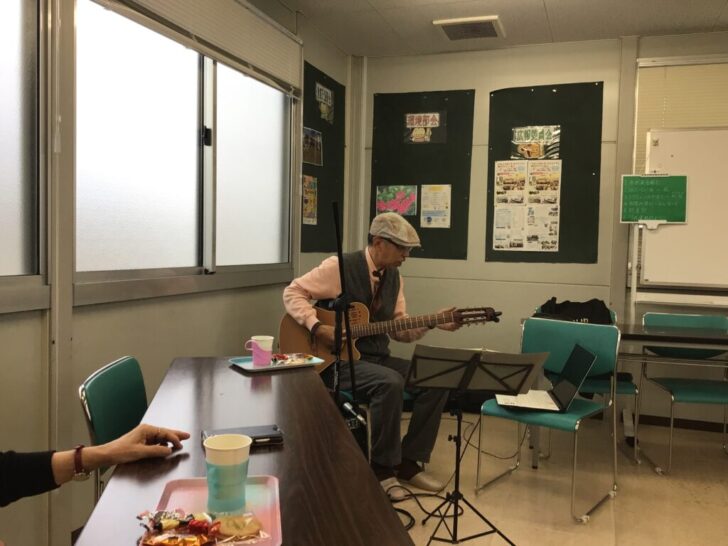 ギター🎸の伴奏に合わせて皆んなで楽しく歌いました。