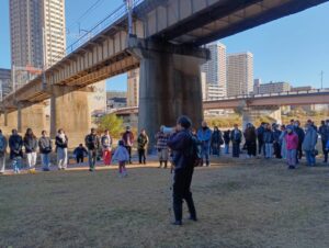武庫川右岸大橋南詰の中洲で『生』の石積みを行いました。