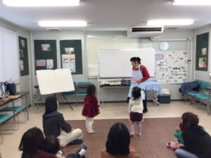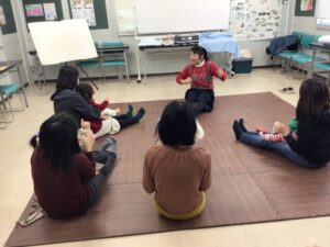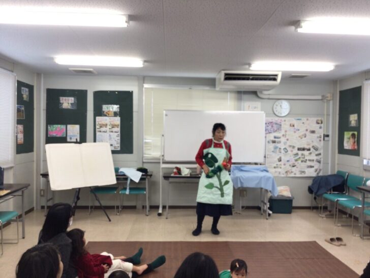 エプロンシアターではまゆこ先生のお話とお歌に合わせて
