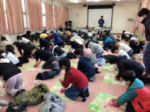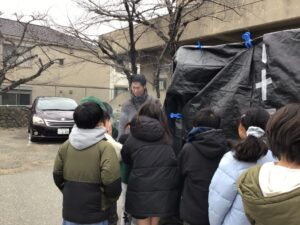 厳冬の児童防災訓練
