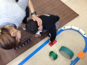 おもちゃで遊んだり、プラレールで電車ごっこと楽しそう❗️
