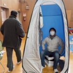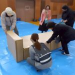 ❹ダンボールベット組立と簡易テント設置