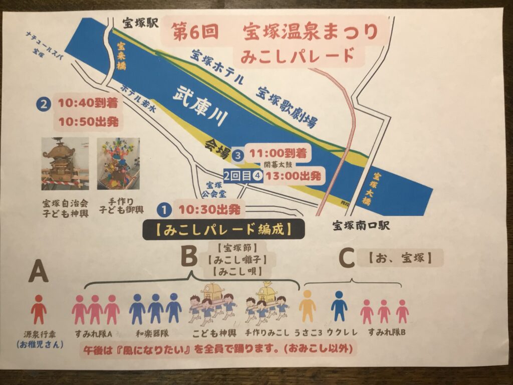 10:30 宝塚公会堂➡️ホテル若水➡️みこし巡行武庫川河川敷右岸