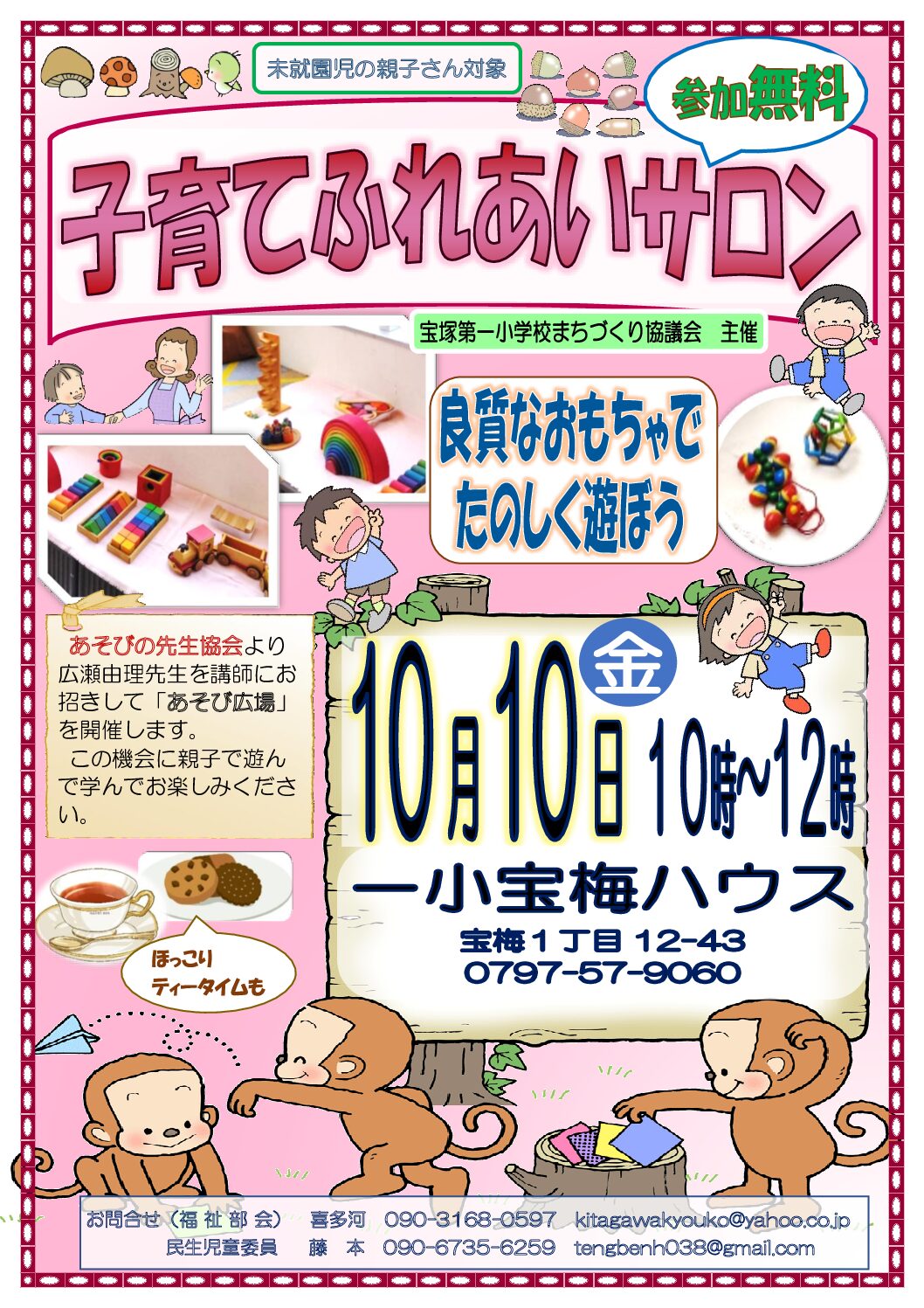 10月10日(金)10:00〜12:00子育てふれあいサロンを開催します。 一小宝梅ハウス(宝梅1-12-43)で未就園児の親子さんが対象です。 テーマは『良質なおもちゃで楽しく遊ぼう‼️』です。 遊びの先生協会より講師…