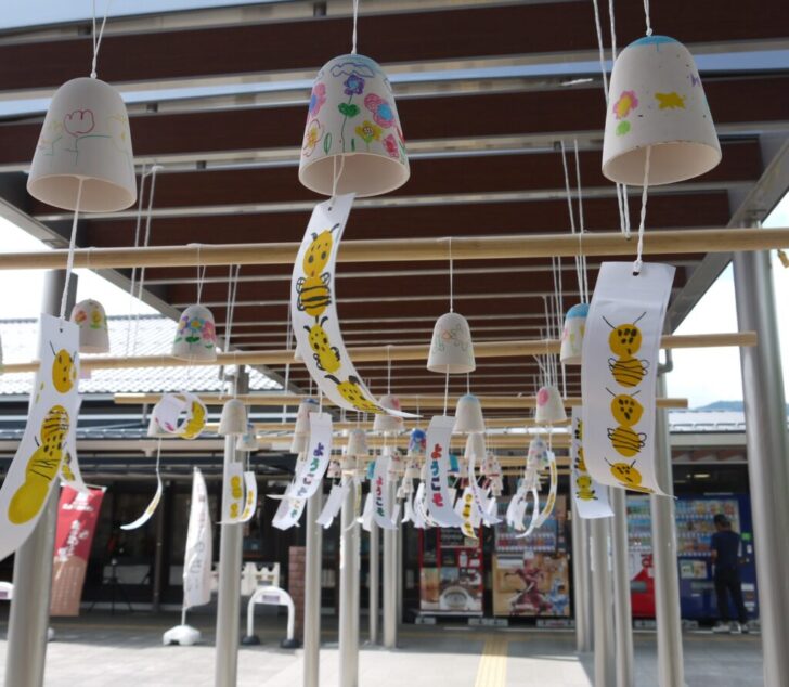 道の駅丹波おばあちゃんの里にて、風鈴飾りで出迎えてもらいました(上記写真)。新鮮な野菜や特産品がたくさん並んでおり買い物を楽しみました。