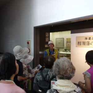 柏原町は織田家柏原藩の城下町として栄えたそうです。観光ガイドの案内で柏原歴史民俗博物館、田スケ女記念館、柏原藩陣屋を見学。