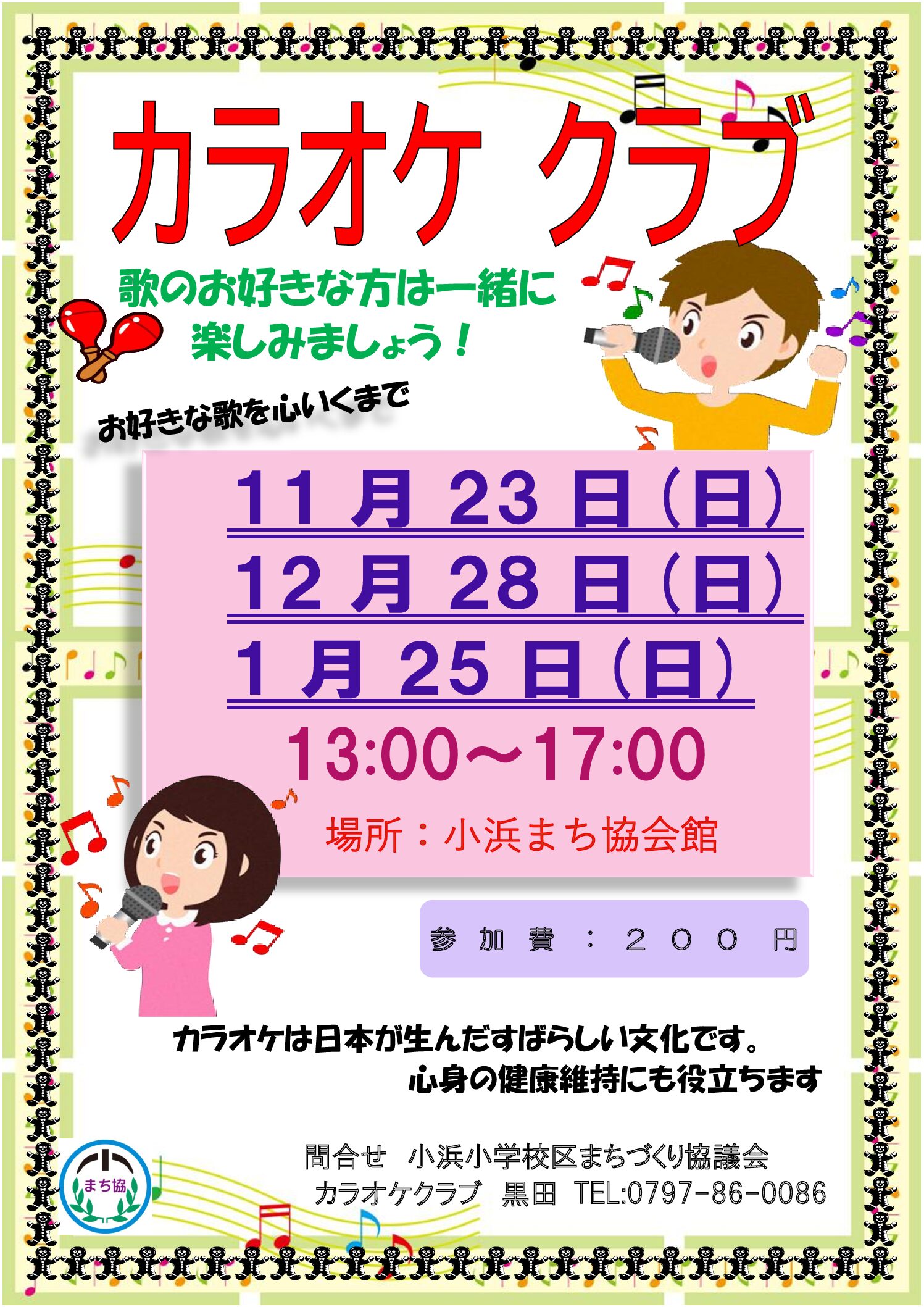 毎月第4日曜日開催。一緒に歌を歌い楽しみましょう。大きな声を出しストレス発散しています。