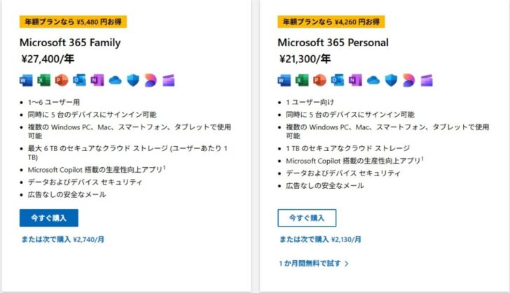 こう見てみますと、Microsoftの方針として「永年版」と言われる購入後最低でも5年間は基本サポート、それに加えたさらに5年の延長サポートを受けられるバージョンは廃止したい。その代わり、毎月更新または毎年更新の「サブスクリプション版」を買って欲しい…ようです。