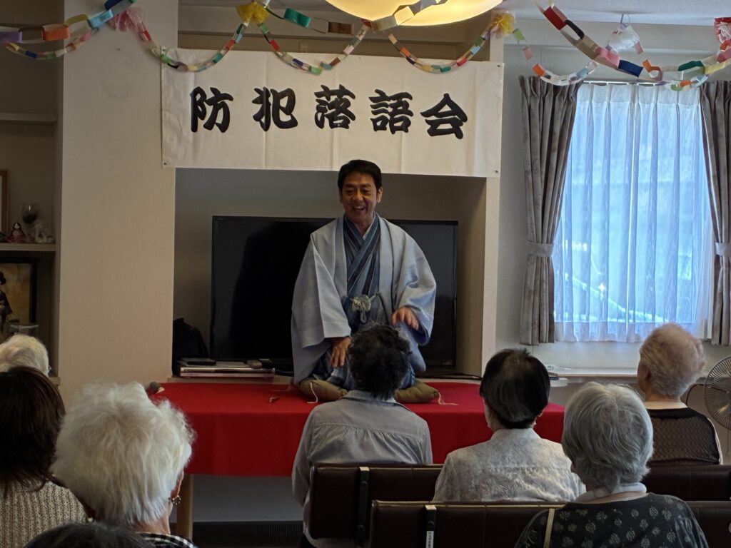 今回で3回目を向かえる防犯落語会です。宝塚市では詐欺被害に逢う人が多いとのことです。身近な方で詐欺被害にあった経験の方もいらっしゃいました。電話窓口の対応策を落語を通じて披露していただきました。光明地域にあった創作もありがたいです。他にもSNS型投資詐欺や国際ロマンス詐欺なども最近の事例で紹介していただきました。