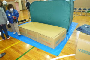 11月23日(日)10時より 指定避難所開設 地域の参加者48名、市役所職員、西消防署南部出張所職員、高司中学校校長先生、教頭先生合わせて9名 合計57名でした。今回、ご家族4人で防災リュックをかついで避難所に来られました、訓練内容を家族の子ども達とも共有して実施されたことに、大変嬉しく思いました。阪神淡路大震災から30年が経過し、震災の体験意識が薄れていく様に思います。災害発生は忘れた頃にやって来ると言われています。先ずはみんなで今できる事からはじめで減災に努めましょう。