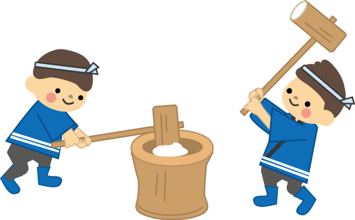 行事予定:1)餅つき大会 (もち米60㎏)まる餅・こし餡餅・きな粉餅・大根おろしを準備 2)豚汁