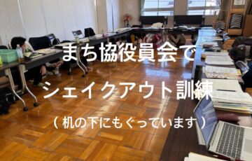 1月17日(土)役員会にてシェイクアウト訓練を実施しました。 地震の揺れから身を守る安全行動(1:姿勢を低くする、2:頭を守る、3:動かない)を約1分間実施するというものです。 今後も、防災意識の向上のため、引き続き訓練…